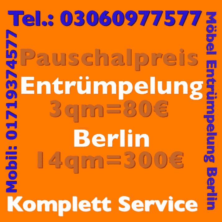 Aufgrund unserer langjährigen Erfahrung, Praxis im Bereich Wohnungsentrümpelung Entsorgung beauftragt uns inzwischen eine Vielzahl an Kunden dies seit vielen Jahren. Denn wir bieten Wohnungsauflösung zum kleinen Preis. Neben unserem Angebot der kompletten Wohnungsauflösung kostenlos Wohnungsentrümpelung Entsorgung Wohnungsentrümpelung Berlin sorgen wir selbstverständlich auch für den Abtransport die fachgerechte Wohnungsentrümpelung Entsorgung sperriger Gegenstände Hausrat aller Art. Sie benötigen Platz für neue Möbel oder planen neue PC-Anlagen oder den Kauf von Elektrogeräten? Wir entsorgen zuvor schnell komfortabel Ihre alten Gebrauchsgegenstände Elektrogeräte wie ausrangierte Fernseher, defekte Computer oder Telefone, Handys Smatphones. Damit schaffen Sperrmüllabholung schnell, sauber zum pauschalen Preis Raum für Ihre Neuanschaffungen. Mit uns an der Seite wird die Möbel Wohnungsentrümpelung Entsorgung in zum Kinderspiel. Mobiliar, Gegenstände aus Holz, Sperrmüll Altmetall, aber auch alte Sofas, Pappe, Umzugskartons, Papier Verpackungen Zeitungen entrümpeln wir in besonders kurzer Zeit und garantieren praktisch konkurrenzlose Preise.